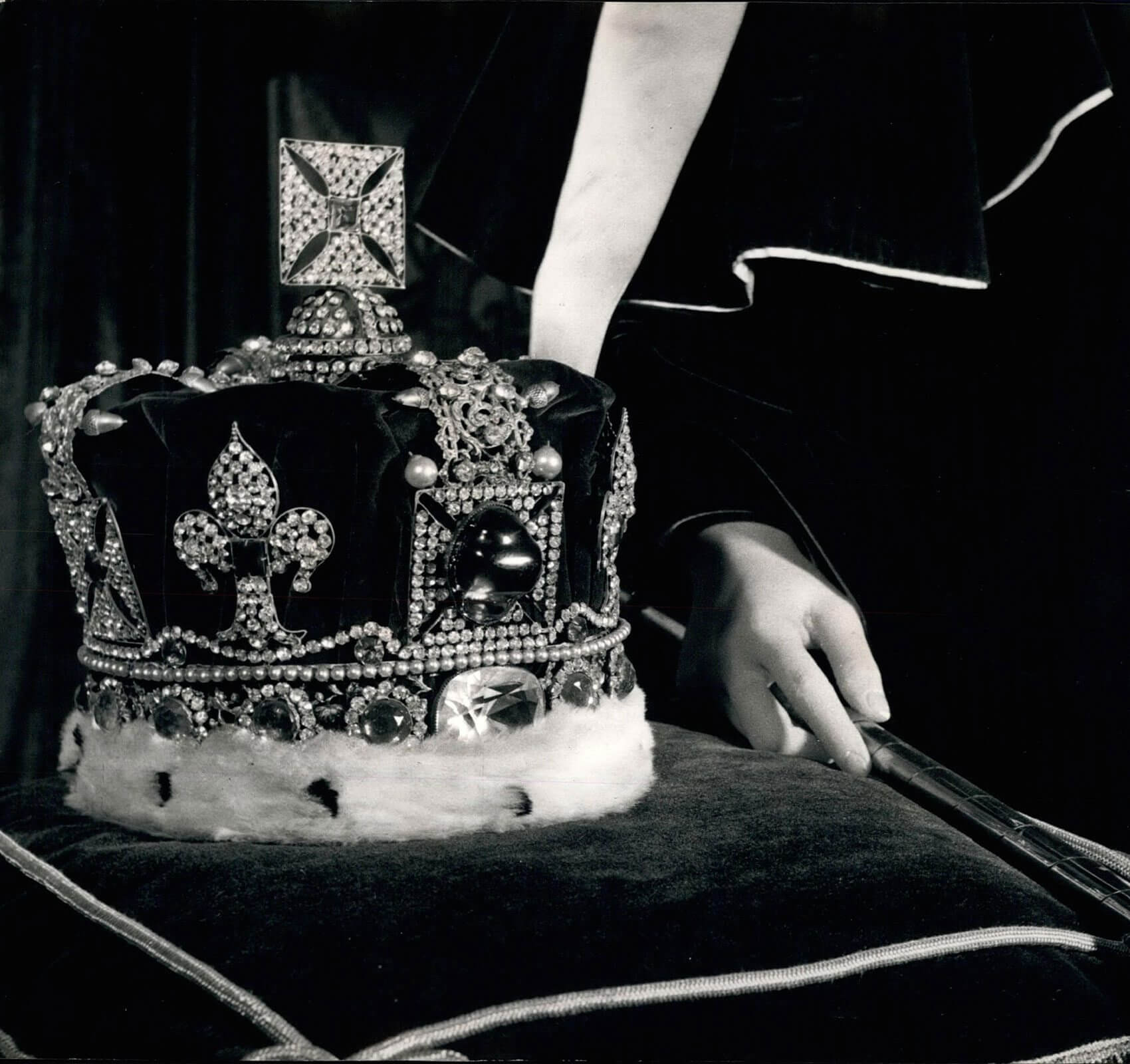 Nearby, at Garrard, the Crown Jeweller and his team of master craftsmen were hunched over workbenches altering the Imperial State Crown to fit the young Queen’s head. Garrard had made the Crown in 1937 for King George VI – a replica of the crown designed and crafted for Queen Victoria, which contained virtually all the same stones symbolic of centuries of Royal history, fitted around a purple velvet cap and ermine band.