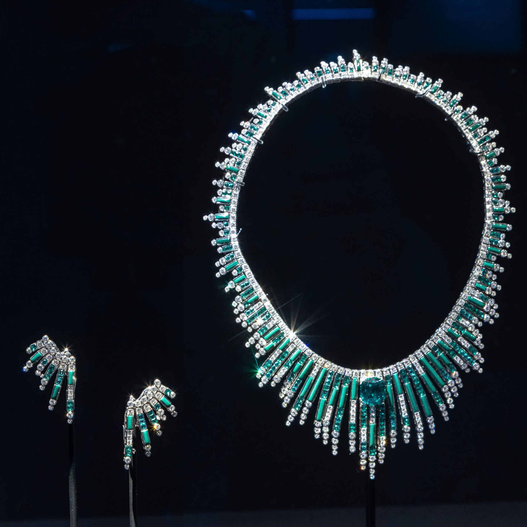 There are many reasons to visit the Crown to Couture exhibition, including the series of red carpet creations that are even more breathtaking thanks to their regal setting. These include Billy Porter’s “Sun God” outfit, which caused a stir at the 2019 Met Gala, Billie Eilish’s billowing pink Oscar de la Renta dress from the 2021 Met Gala and Beyoncé’s shimmering golden gown, complete with crown, that she performed in at the 2017 GRAMMY Awards. Another is the spectacular collection of historic and contemporary jewellery, an essential element of both Georgian court dress and the red carpet, curated by Melanie Grant, award-winning author and Executive Director of the Responsible Jewellery Council.
