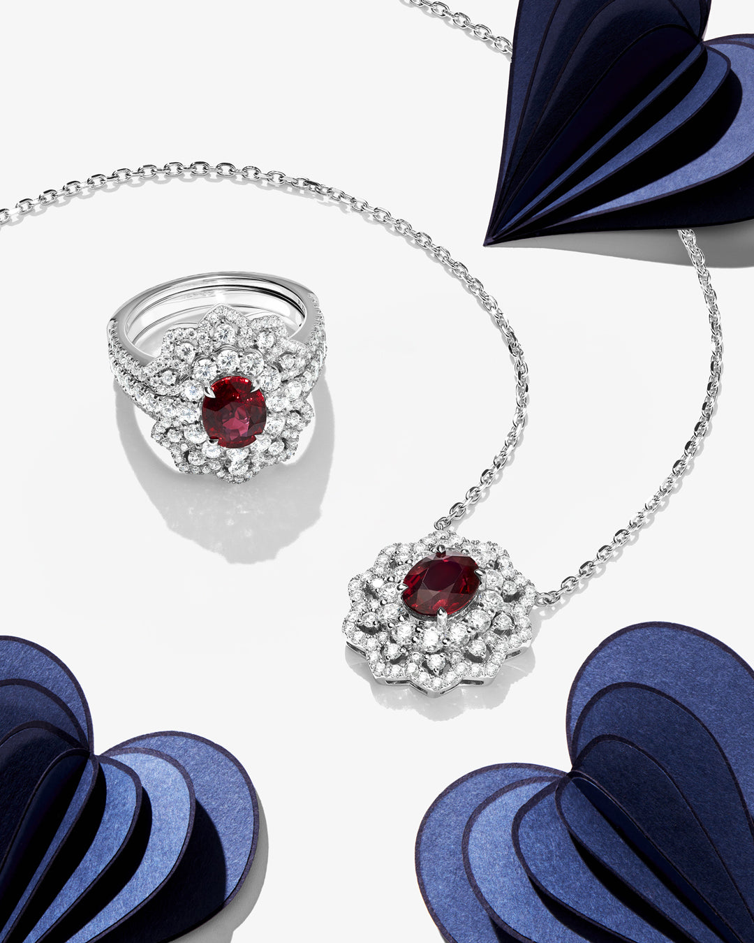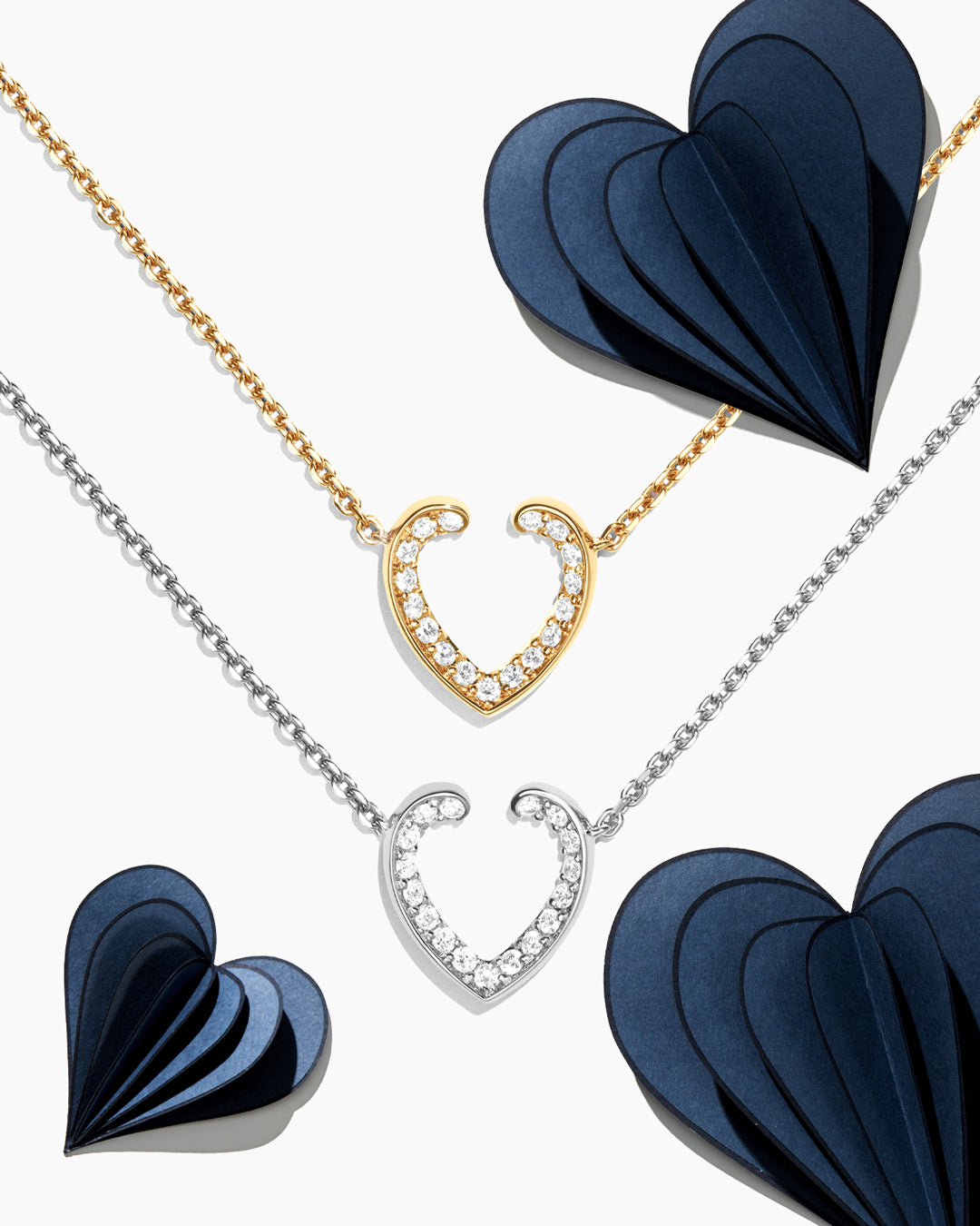 A pure open-heart motif, Aloria is expressed in a spectrum of colours, with matching pieces designed to be worn together.
